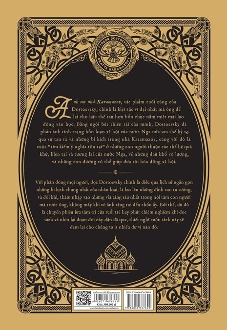 Anh em nhà Karamazov, tác phẩm cuối cùng của Dostoevsky, chính là kiệt tác vĩ đại nhất mà ông để lại cho hậu thế sau hơn bốn chục năm miệt mài lao động văn học. Bằng ngòi bút thiên tài của mình, Dostoevsky đã phản ánh tình trạng hỗn loạn xã hội của nước Nga nửa sau thế kỷ 19 qua sự tan rã và những bi kịch trong nhà Karamazov, cùng với đó là cuộc “tìm kiếm ý nghĩa tồn tại” ở những con người thuộc các thế hệ quá khứ, hiện tại và tương lai của nước Nga, về những đau khổ vô lượng, và những con đường có thể giúp đưa tới hòa đồng xã hội.
