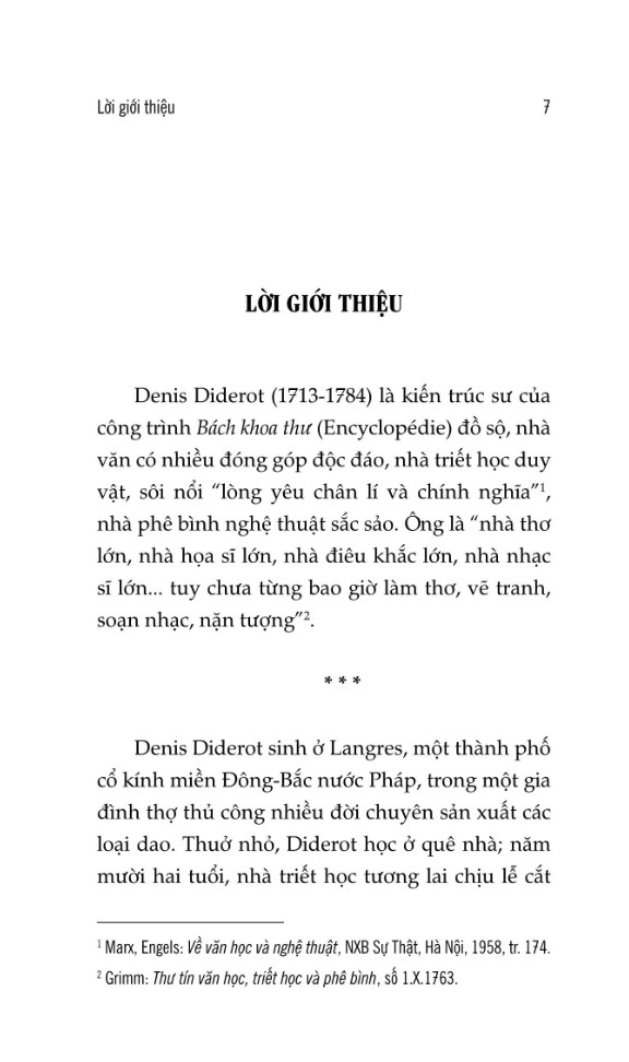 Trong khuôn khổ một bài giới thiệu sách, không thể viết dài. Điều cuối cùng tôi nghĩ nếu như bạn đọc nào đã đọc Don Quichotte của Cervantes, đọc Fauster của đại thi hào Goethe, đọc Logic của Hegel và đọc Mặt trời đen của Nietzche... thì không nên bỏ lỡ cơ hội đọc Cháu ông Rameau của Denis Diderot, nhất là khi nó đã được dịch ra Việt ngữ một cách rất thành công.